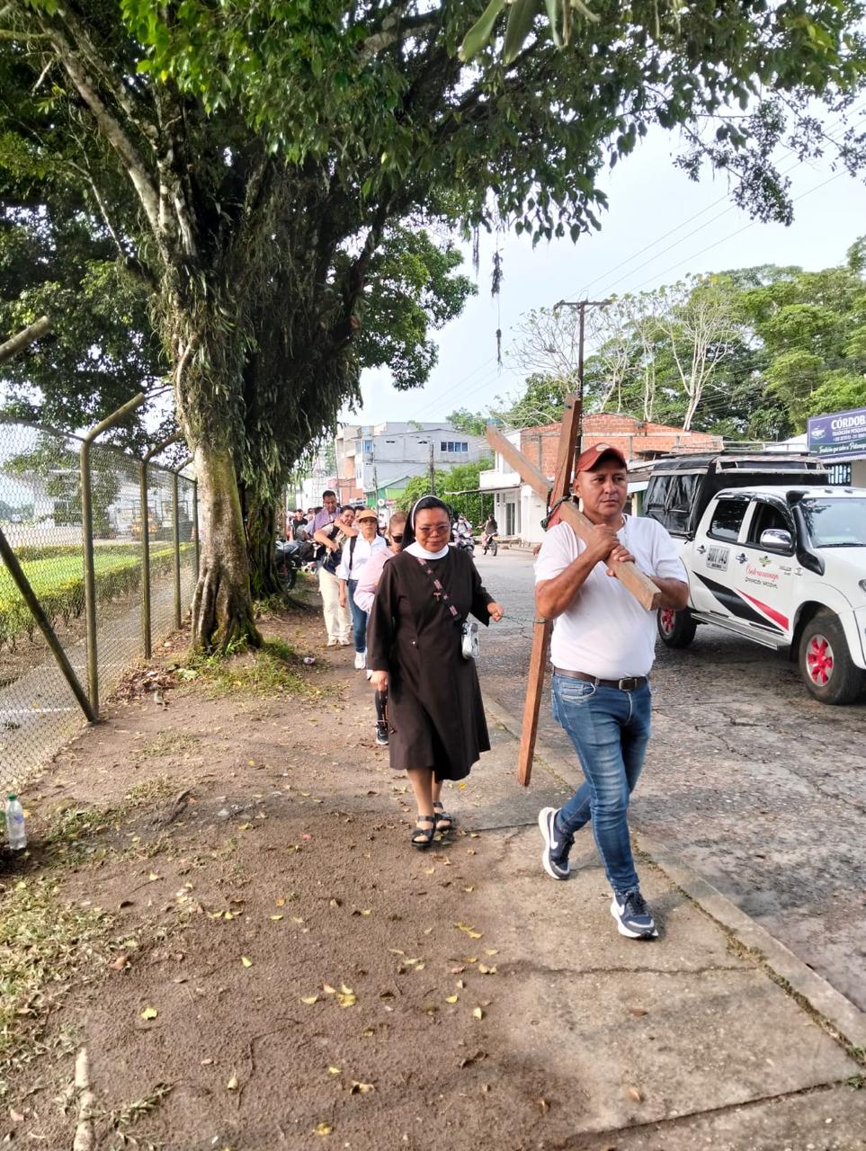 Uno de los momentos más representativos de la jornada fue el viacrucis realizado a pie desde la Sede I hasta la finca Las Castañas. Durante el recorrido, los participantes vivieron una experiencia de recogimiento y reflexión, en la que el esfuerzo físico se transformó en símbolo de las cargas diarias, encontrando en la fe y en la compañía de Cristo la fortaleza para sobrellevarlas. El paso por sectores como el aeropuerto Tres de Mayo evocó recuerdos personales y permitió una conexión más íntima con la vivencia espiritual.