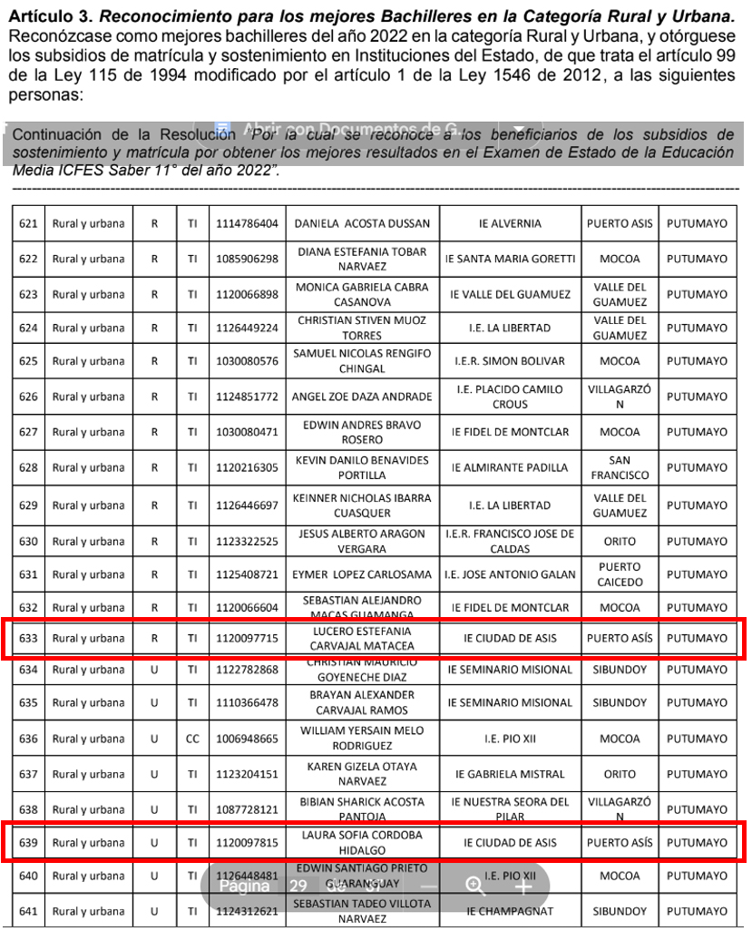 Este reconocimiento resalta a los bachilleres más pilos del país en las categorías nacional, departamental, rural y urbana. En esta ocasión, el departamento del Putumayo obtuvo 26 distinciones, de las cuales 5 corresponden a nuestra institución, un logro que nos llena de satisfacción y que reafirma el compromiso de nuestros estudiantes con la excelencia académica.