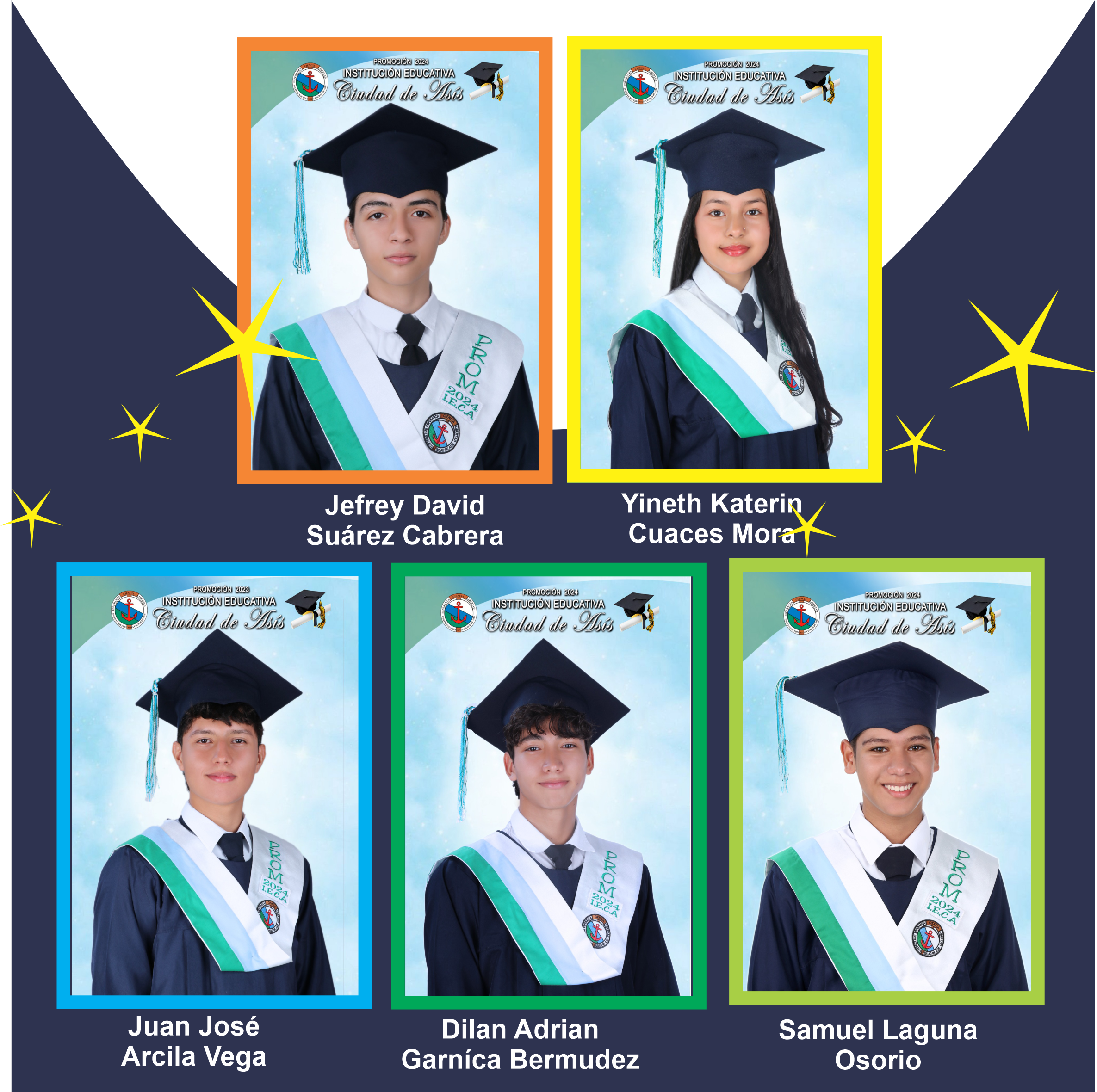 Con orgullo mencionamos a nuestros galardonados: Jefrey David Suárez Cabrera, Yineth Katerin Cuaces Mora, Juan José Arcila Vega, Dilan Adrian Garníca Bermudez y Samuel Laguna Osorio, quienes hoy son ejemplo de disciplina, esfuerzo y dedicación. A ellos extendemos nuestras felicitaciones, al igual que a sus familias, que desde el inicio confiaron en nuestra institución y caminaron de la mano con los docentes, cuyo profesionalismo y entrega han hecho de esta promoción una de las mejores de nuestra historia.