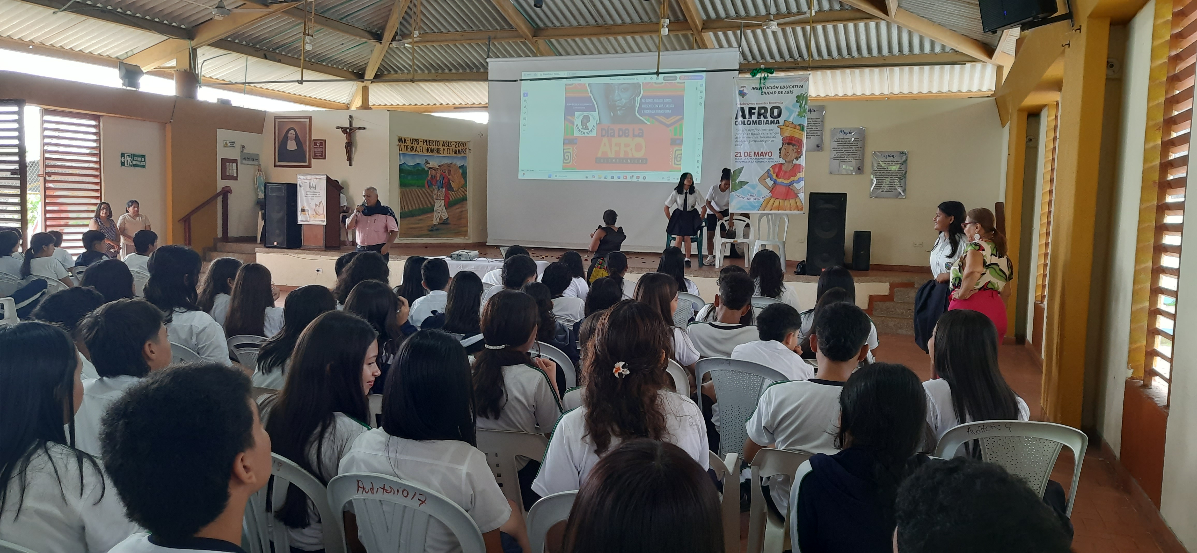 Puerto Asís, 21 de mayo de 2025 — En el marco del Día de la Afrocolombianidad, la Institución Educativa Ciudad de Asís vivió una jornada llena de arte, cultura, historia y reflexión, gracias al programa organizado por los docentes del área de Ciencias Sociales. El evento se llevó a cabo en el Auditorio Madre Caridad, que se convirtió en escenario de múltiples actividades conmemorativas, destacando el legado afrocolombiano y su importancia en la construcción de nuestra identidad como nación.