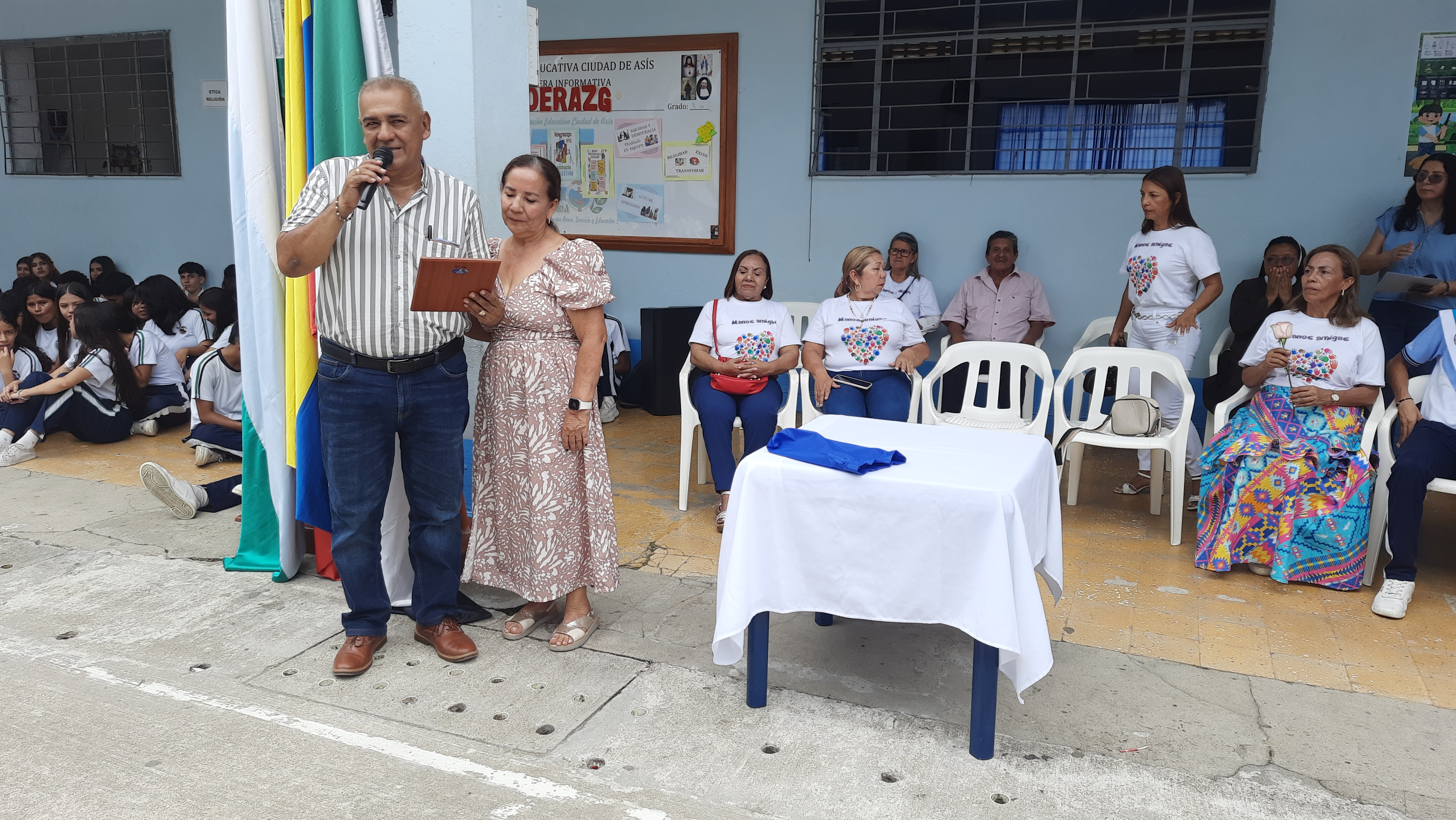 El evento, realizado en la Institución Educativa Ciudad de Asís, fue un verdadero tributo a su legado. Los niños, acompañados por sus docentes, formaron una calle de honor para recibir a quien fue guía y referente en el fortalecimiento pedagógico y humano de toda la región. Posteriormente, las directivas de la institución, junto con una comisión de allegados, compartieron palabras de agradecimiento y entregaron un reconocimiento simbólico, cerrando la jornada con un compartir lleno de afecto.
