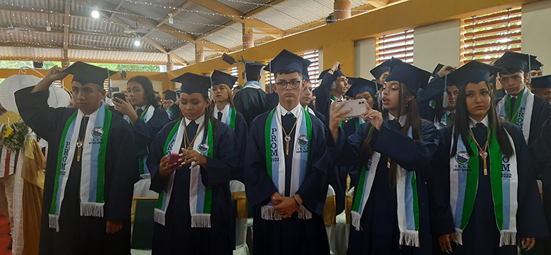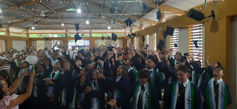 El Auditorio Madre Caridad, fue el escenario para realizar la ceremonia de graduación correspondiente al año lectivo 2022, en la cual obtuvieron el título de bachilleres comerciales 103 estudiantes y que correspondieron a la cuadragésima promoción.