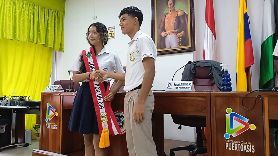 Con el acompañamiento del Profesor Fernando Ramirez y El Concejo Municipal de Puerto Asís, el día viernes 7 de octubre el estudiante Camilo Andrés Jurado Enríquez, actual contralor de la Institución Educativa Ciudad de Asís y Liceth Vanessa Alvarez Rengifo estudiante, pudieron visitar y aprender aún más de las obligaciones y la importancia de los Concejales. Dónde también aprendieron a formar la mesa Directiva del Concejo Municipal. La Invitación de estos dos Jóvenes para la demás población educativa y juventud en general es que comencemos a empoderarnos de nuestra Constitución Política de tal manera que lleguemos a ser el futuro Gobierno de nuestro País con acciones de un Futuro con Paz y Desarrollo económico.