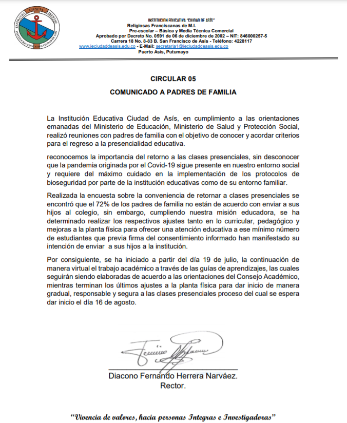 Comunicado a padres de familiaPublicado el 03 Agosto 2021 | Escrito por Super Usuario | Imprimir | Email | Visitas: 3613 Descargar PDF