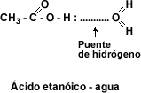 El grupo carboxilo -COOH confiere caracter polar a los ácidos y permite la formación de puentes de hidrógeno entre la molécula de ácido carboxílico y la molécula de agua. La presencia de dos átomos de oxigeno en el grupo carboxilo hace posible que dos moléculas se unan entre sí por puente de hidrógeno doble, formando un dímero cíclico.