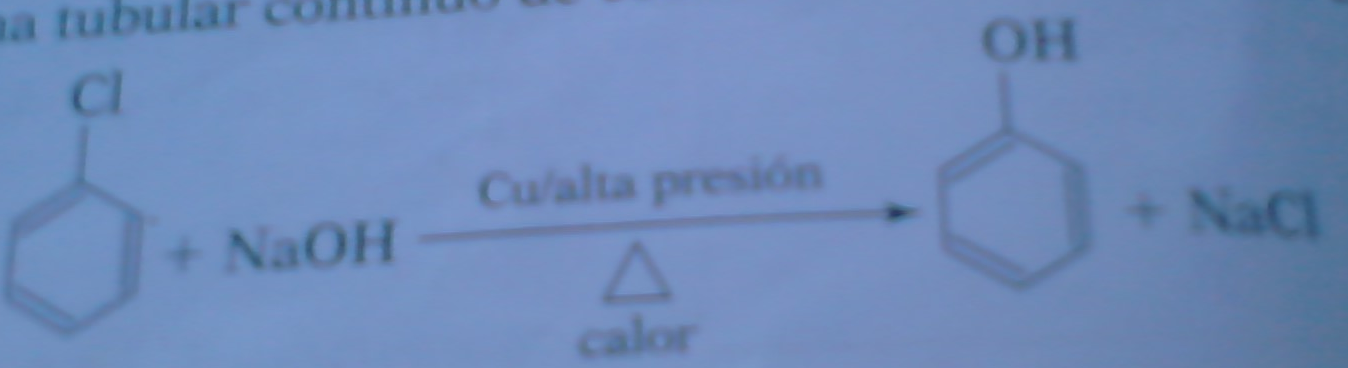 Consiste en calentar el clorobenceno con hidróxido sódico bajo una presión muy elevada y en un sistema tabular continuo de cobre.