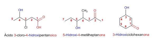 Cuando en la molécula hay grupos funcionales de mayor prioridad, el alcohol pasa a ser un sustituyente y se llama hidroxi-, son prioritarios frente a los alcoholes los: ácidos carboxílicos, anhídridos, ésteres, haluros de alcanoilo, amidas, nitrilos, aldehidos y cetonas.