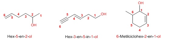 El grupo OH es prioritario frente a los alquenos y alquinos. La numeración da el localizador más bajo al -OH y el nombre de la molécula termina en -OL