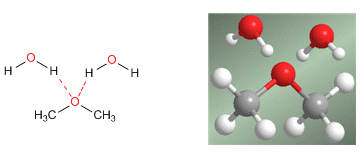 La importante solubilidad en agua se explica por los puentes de hidrógeno que se establecen entre los hidrógenos del agua y el oxigeno del éter.